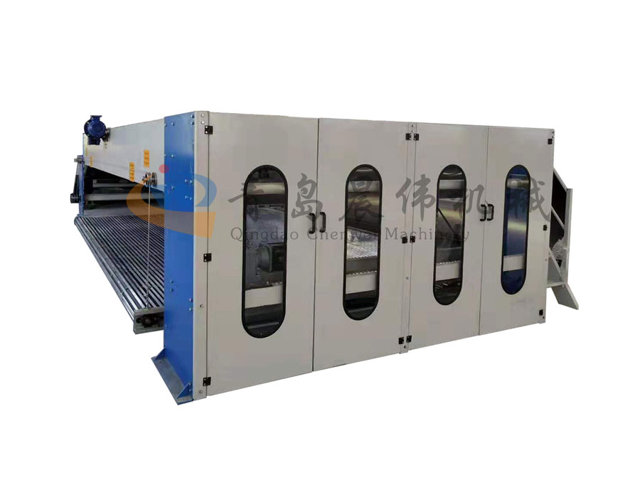 4.夾持式防靜電喂入簾,往復換向運轉平穩(wěn),纖網(wǎng)厚薄均勻,輸出簾升降調節(jié)方便。